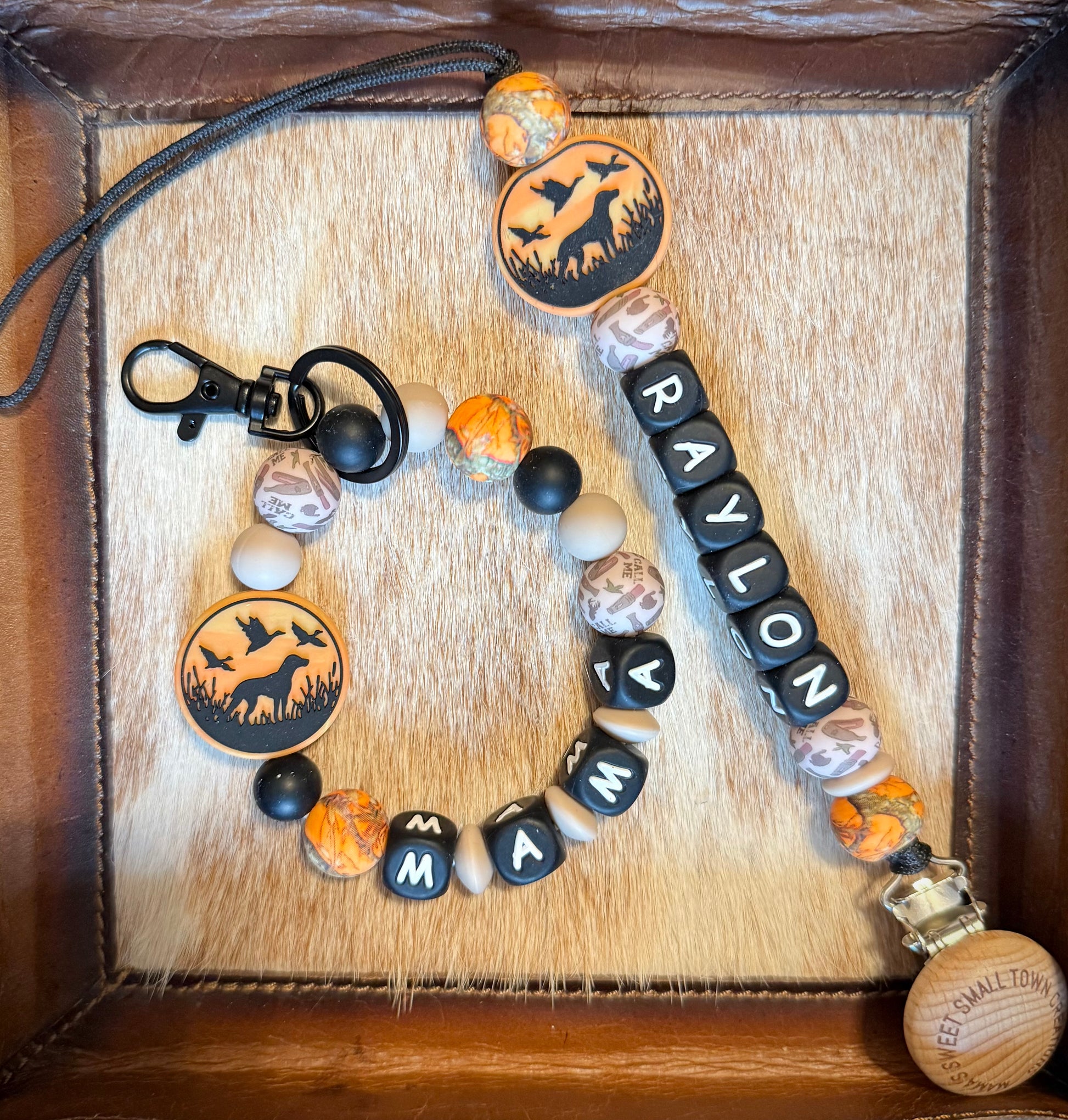 silicone beaded stretchy mama wristlet and silicone beaded pacifier holder with beechwood clip